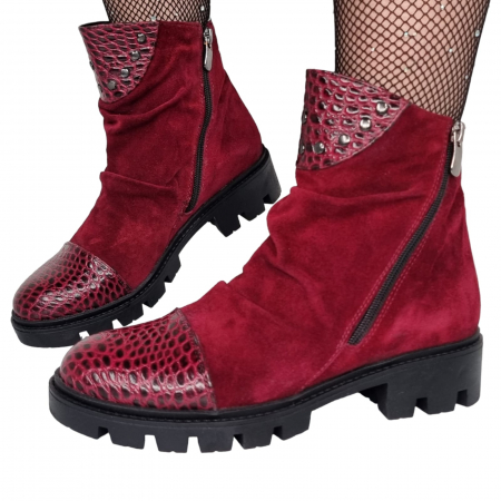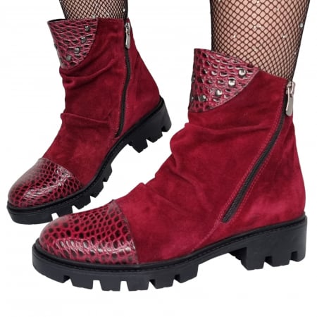 Ghete Damă Casual Din Piele Naturală Vișinie 8510