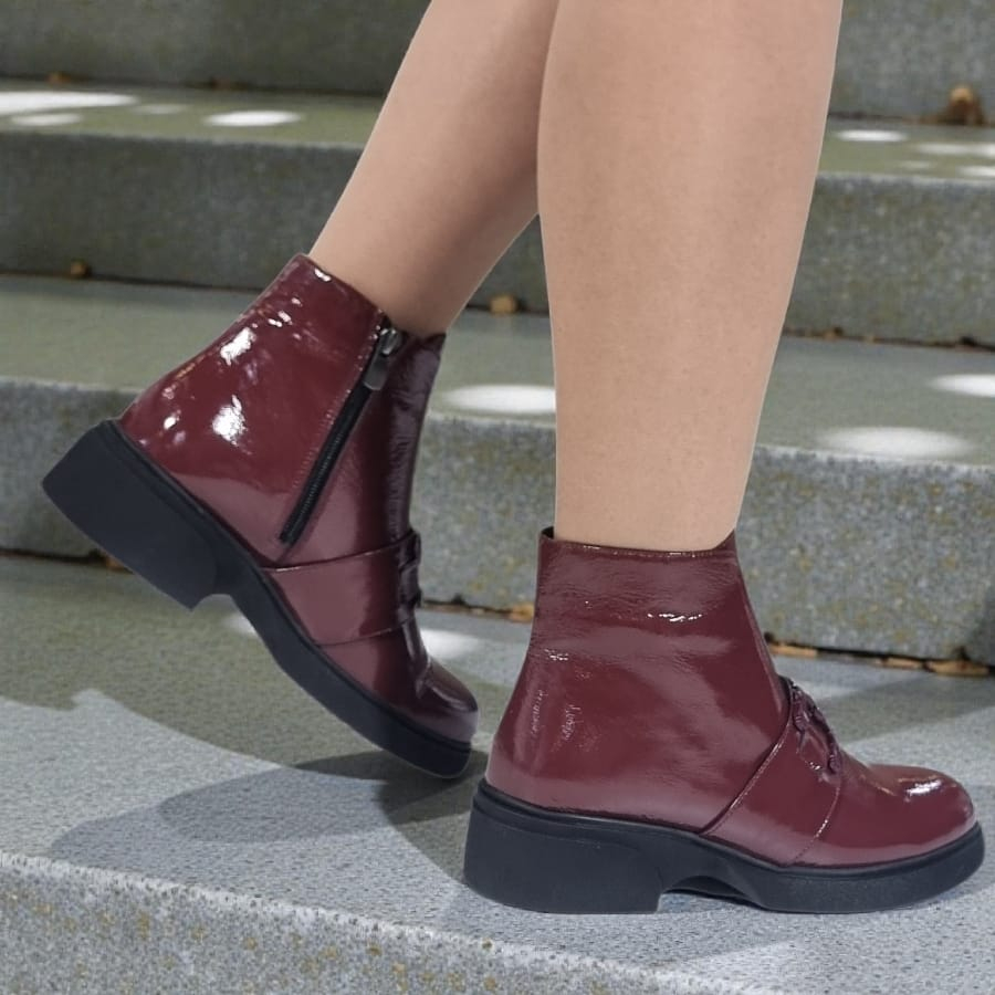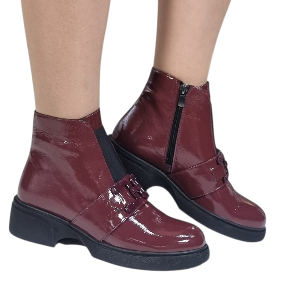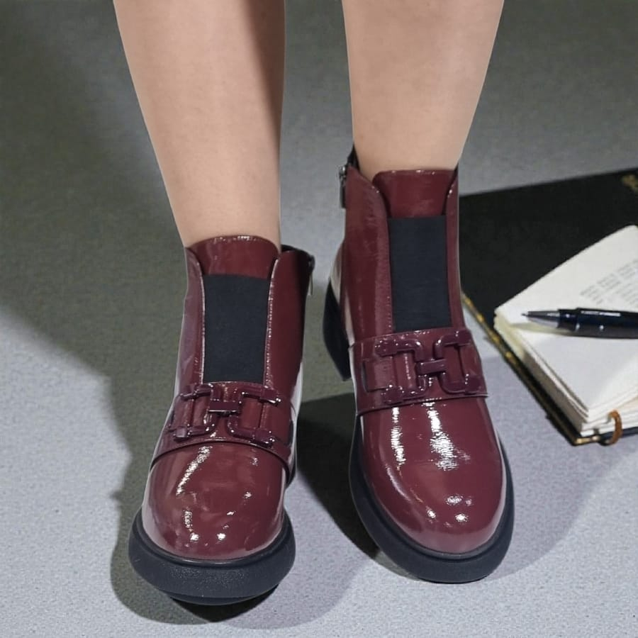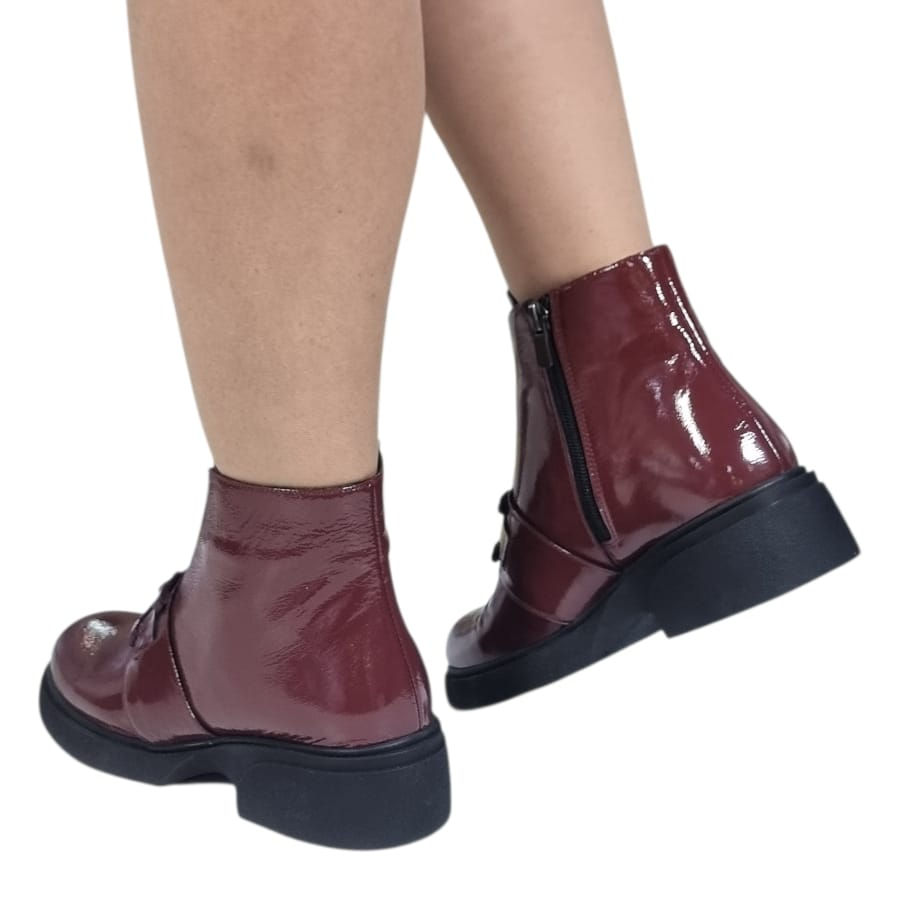 Ghete Damă Casual Din Piele Naturală Bordo Lac 30426